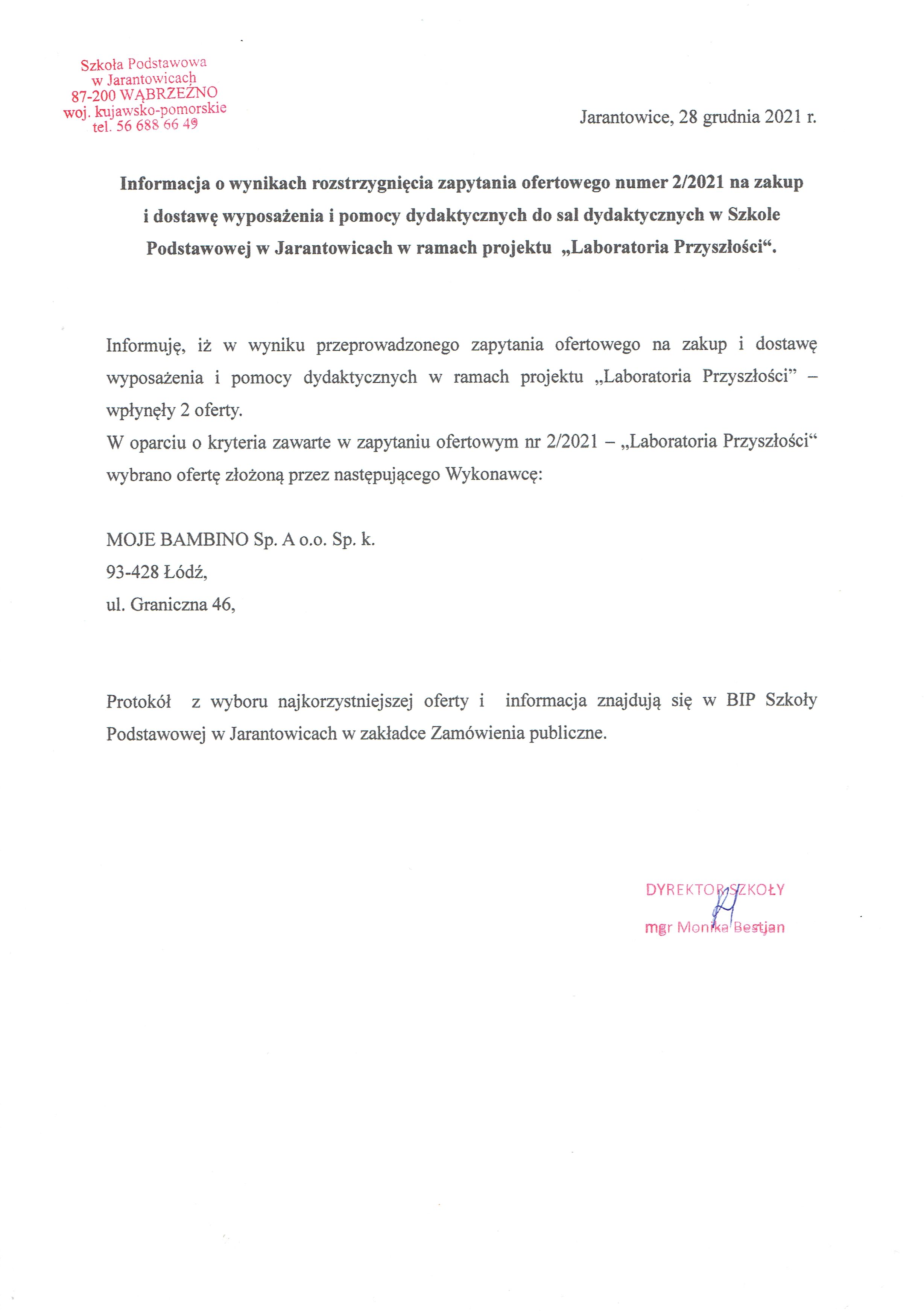 | zaproszenie do złożenia ofery cenowej - pomoce dydakt. | usunięty: 11:54, 28.12.2021 | przez: Monika Bestjan | |